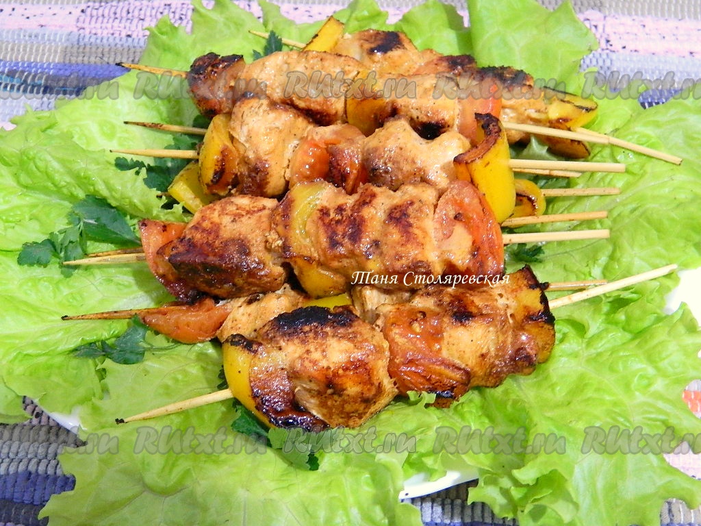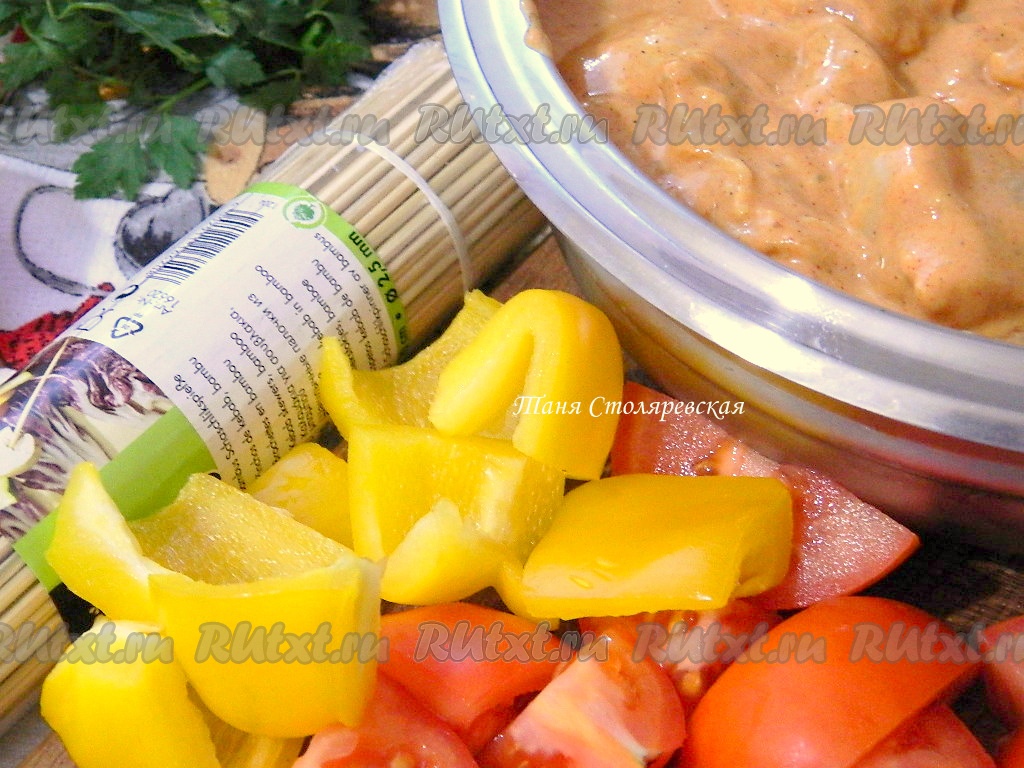 Для приготовления шашлыка из курицы с овощами на шпажках в духовке нам потребуется: