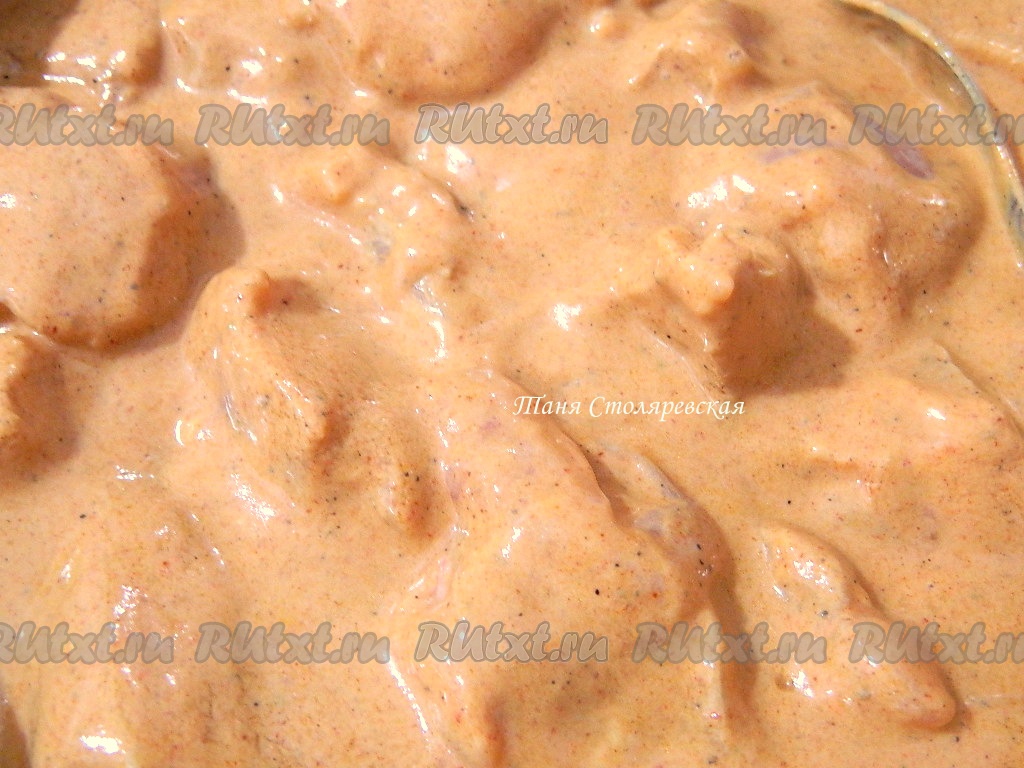 Тщательно перемешать мясо в маринаде и поставить минимум на 4 часа (а лучше на ночь) в холодильник.
