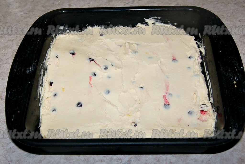 Добавить чернику (если у вас замороженная черника, то добавляем не размораживая) и с помощью силиконовой лопатки аккуратно перемешать, чтобы не помять ягоды.