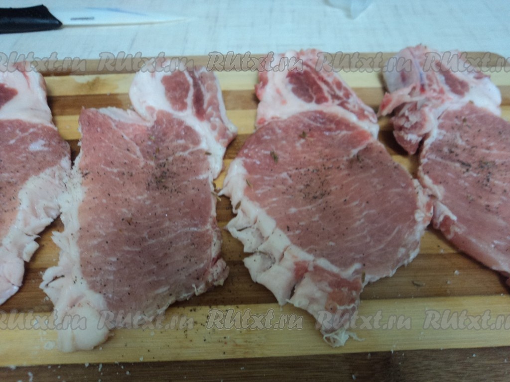 На свиных отбивных сделать небольшие надрезы в жировой прослойке.