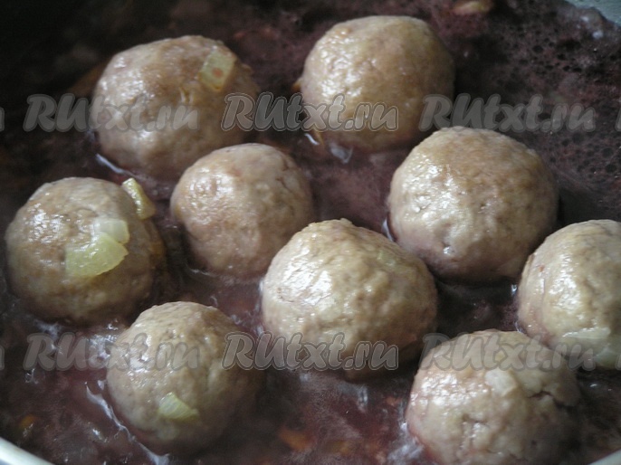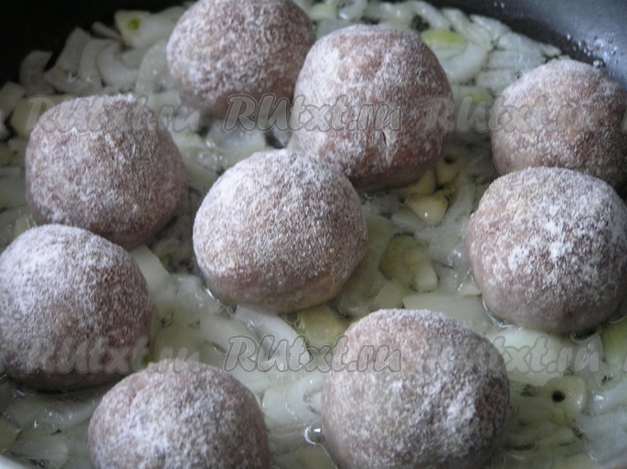 затем выложить фрикадельки, обжарить до золотисто-коричневого цвета.