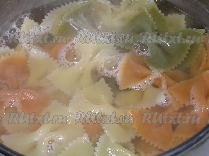 Пасту отварить в соленой воде аль-денте (на зубок).