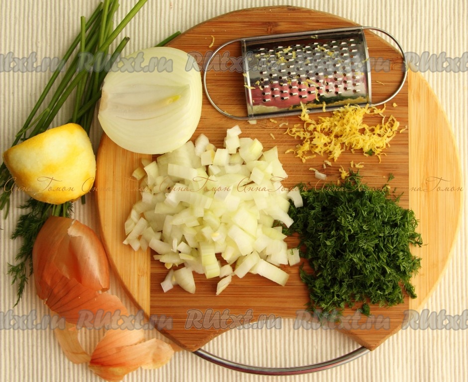 3. Лук мелко нарезать, укроп измельчить. С помощью мелкой терки снять с лимона цедру.