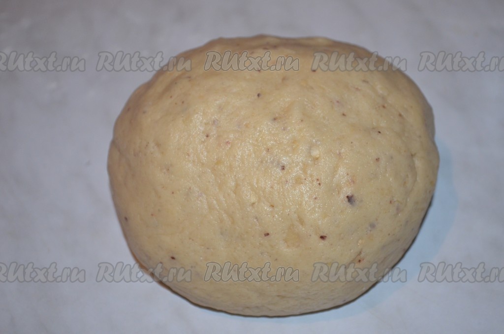 Быстро замесить крутое, не липнущее к рукам песочно-ореховое тесто и убрать в холодильник на 30-40 минут.