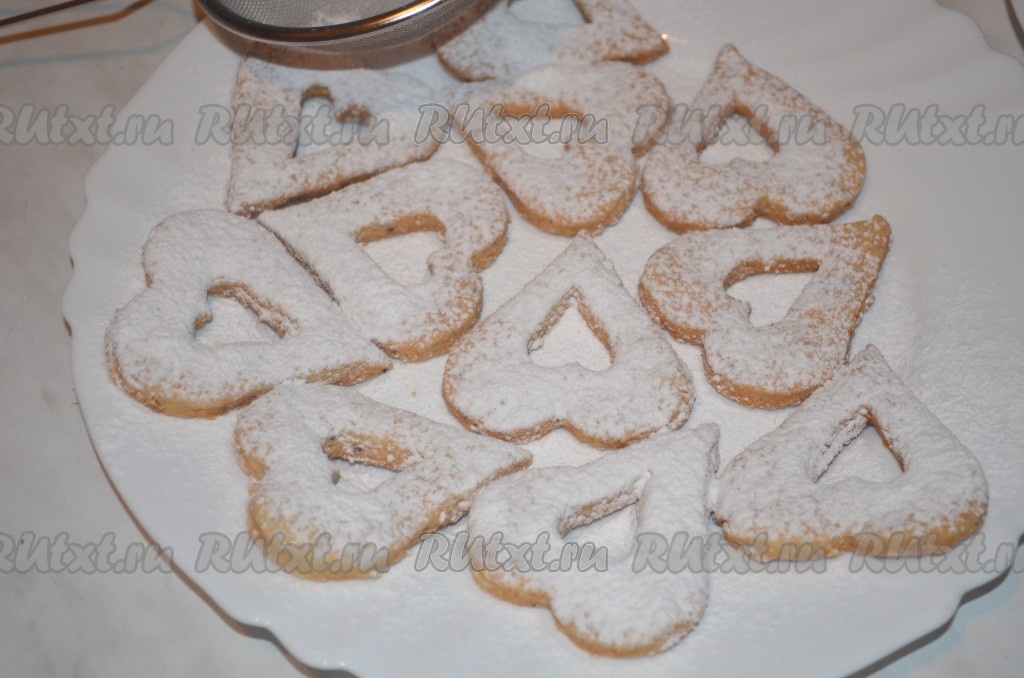 Печенье с "окошком" обильно посыпать сахарной пудрой.