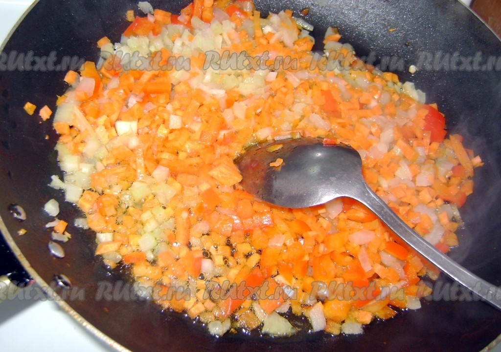 В сковороде с маслом пассировать овощи.