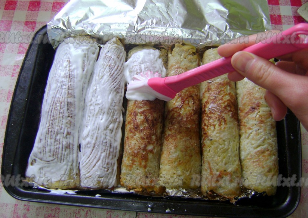 Смазать рулетики сметаной,