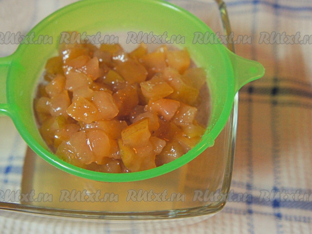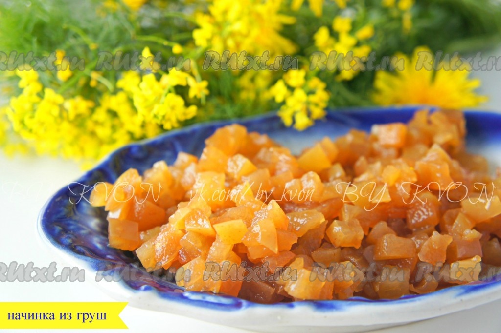 СПОСОБ № 2. Но удобнее приготовить начинку сразу впрок - это существенно сэкономит время. Для этого нарезанные груши засыпать сахарным песком, перемешать, дать постоять 7-8 часов. Банки простерилизовать. Довести груши с сахаром до кипения, разложить в банки и закатать. Накрыть банки одеялом и оставить остывать. Затем убрать в прохладное и темное место. Перед использованием грушевой начинки для блинов, груши необходимо процедить, грушевый сироп немного уварить до более густого состояния, получится вкусный сироп к блинчикам.