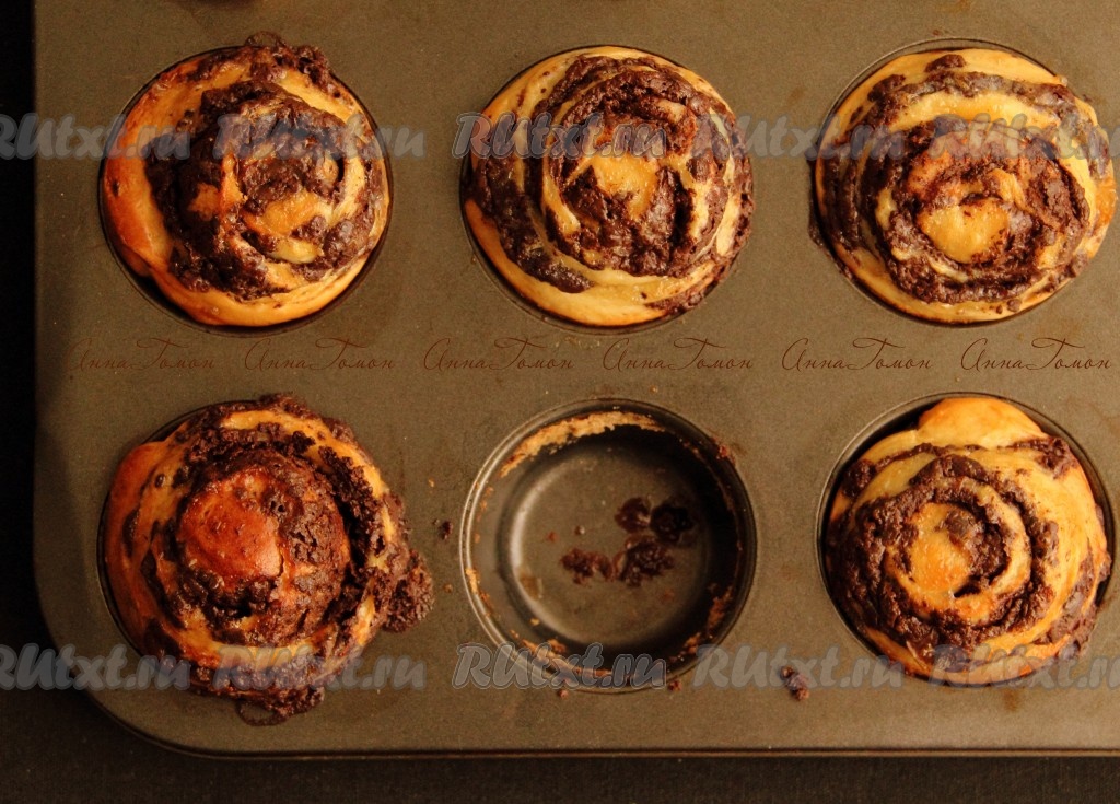 Выпекайте плюшки с шоколадом в духовке при температуре 180 градусов около 15-20 минут.