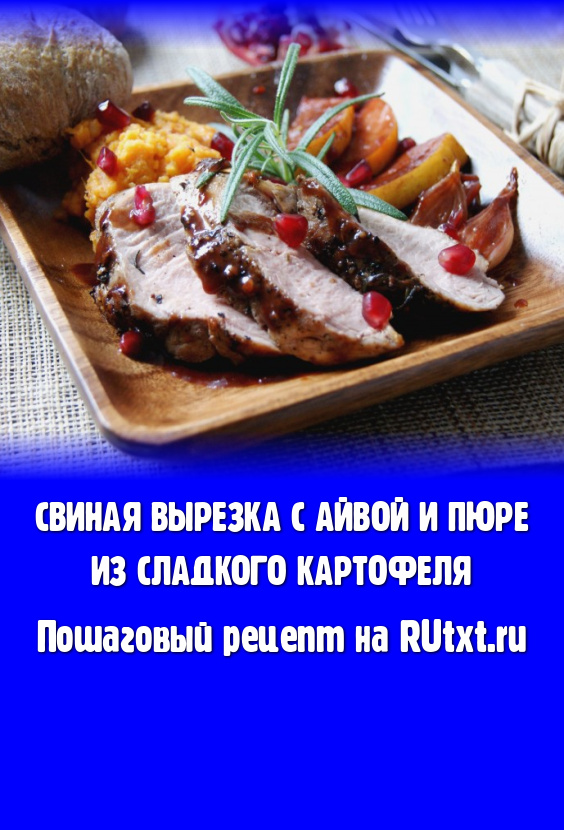 Начинаем готовить гарнир. Сладкий картофель чистим, нарезаем на кубики и отвариваем в подсоленной воде до готовности. Сливаем воду, картофель пюрируем, добавляем ложечку сливочного масла. Айву нарезаем кусочками, лук режем на две половинки. В сковороду наливаем оливковое масло, сок одного граната, 1 столовую ложку сока лайма, сладкий чили соус, добавляем щепотку соли и 50 мл красного вина. Доводим смесь до кипения и увариваем минут 7 до загустения. Кладём в соус кусочки айвы и лука и готовим минут 5 (если соус очень густой - добавляем оставшееся вино).