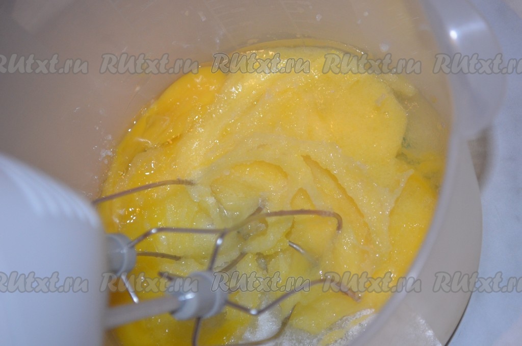 Яйца взбить с сахаром и ванилином.