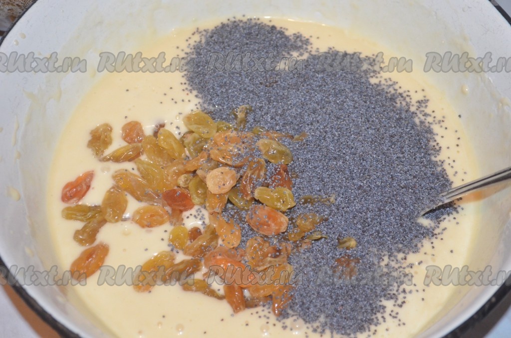 Добавить в тесто мак и изюм.