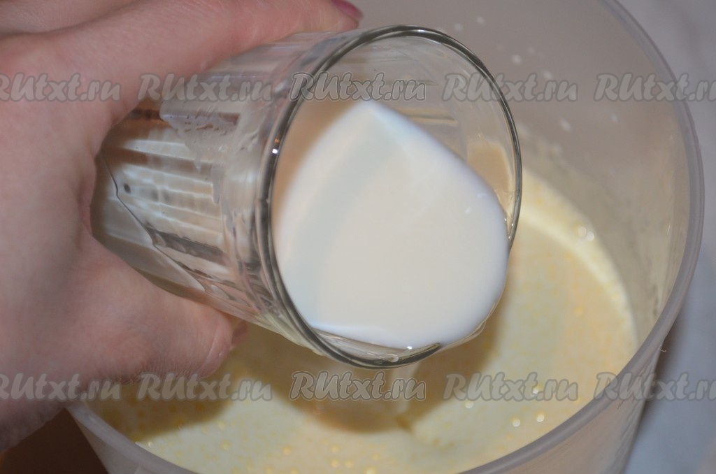 Затем добавить молоко, перемешать.