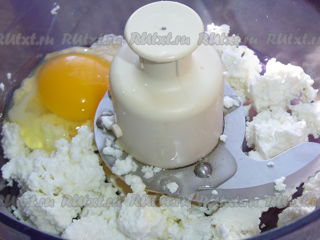 Пока начинка остывает приступаем к приготовлению теста, для этого соединяем кефир с молоком, перемешиваем, затем смешиваем творог, яйца, половину молочной смеси и хорошенько взбиваем с помощью кухонного процессора или блендера.