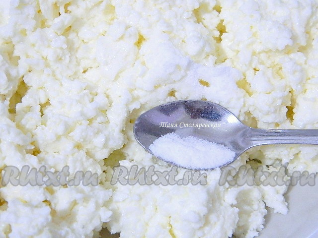Взбиваем вилкой творог или перетираем через сито.
