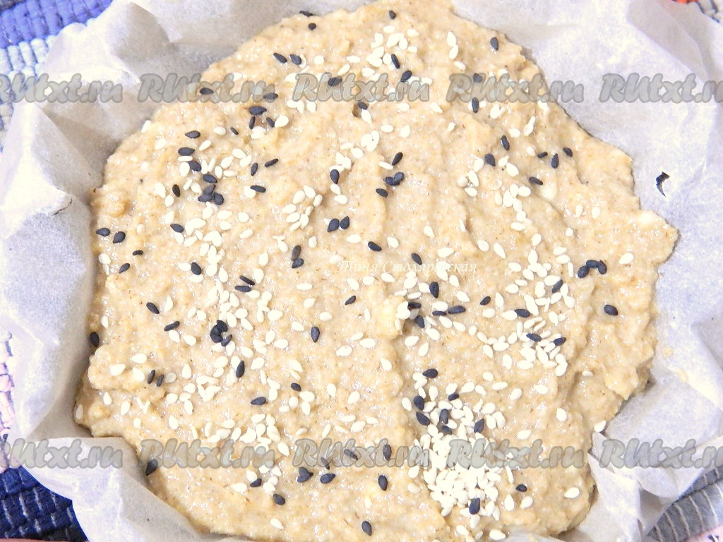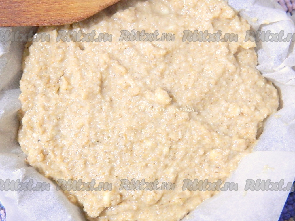 Выложить тесто в форму, смазанную тонким слоем масла или выстланную пергаментной бумагой.