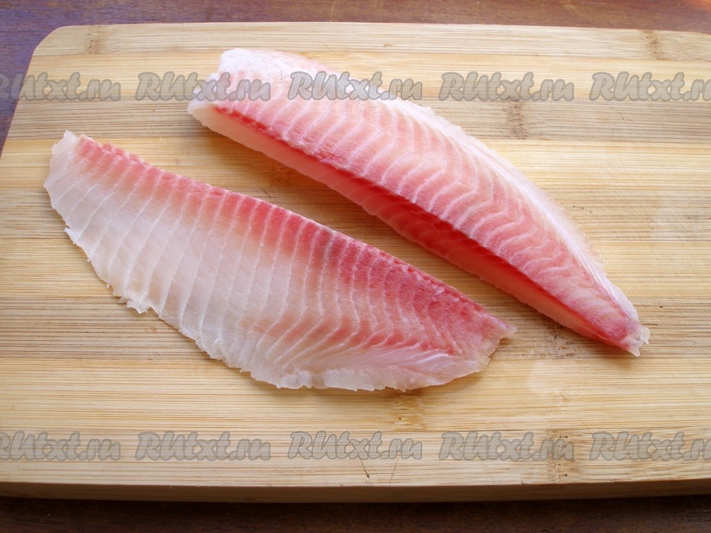 Филе окуня вымыть и разрезать на 2 или 4 части.