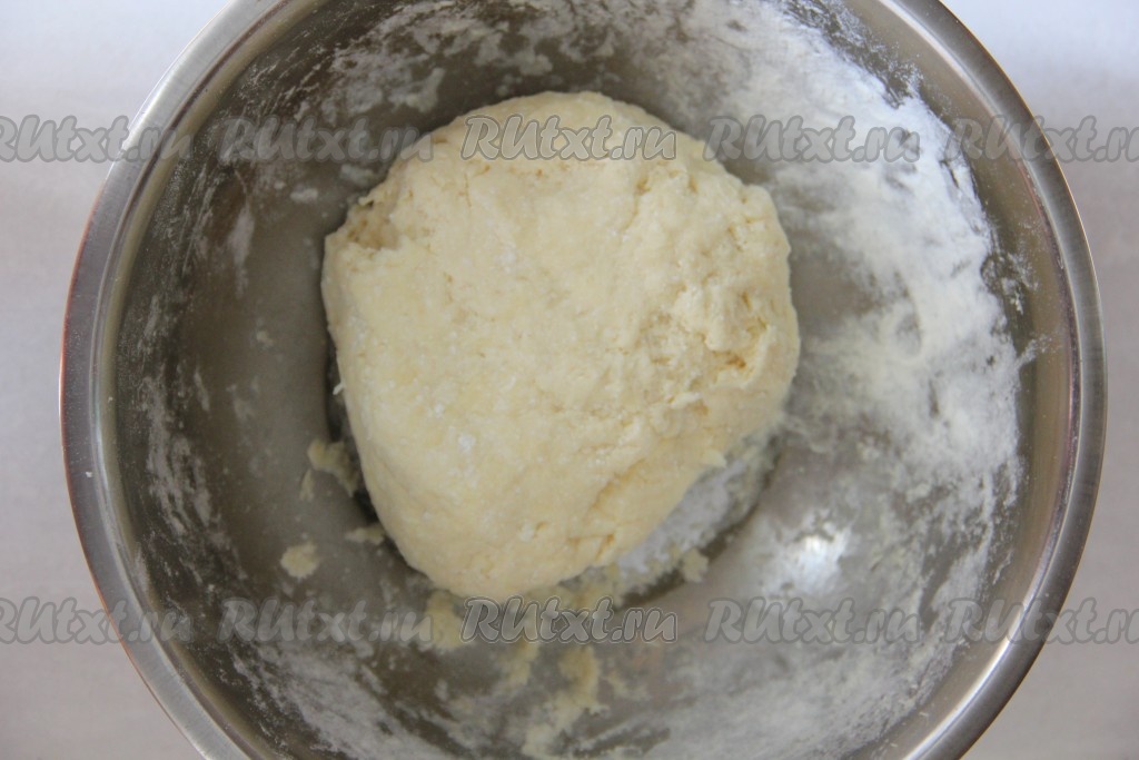 Добавить разрыхлитель, соль и муку. Замесить однородное тесто.