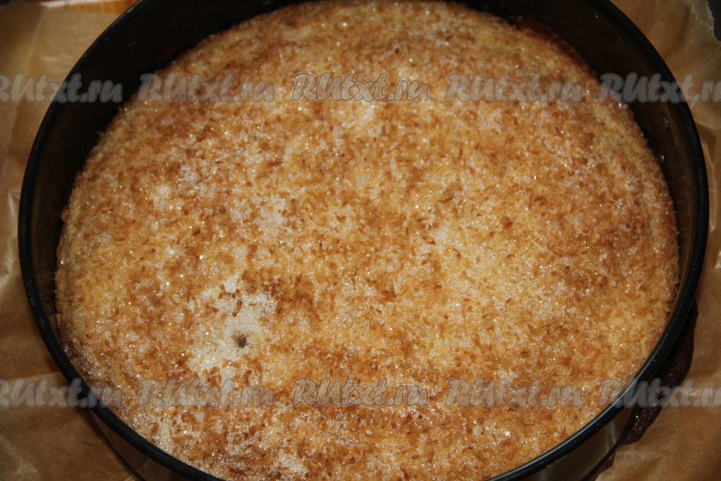 Полученную сухую смесь, высыпать равномерно на наше тесто.