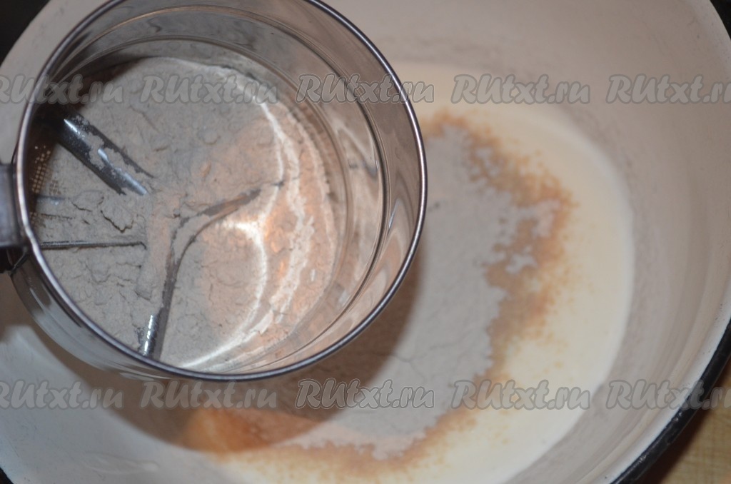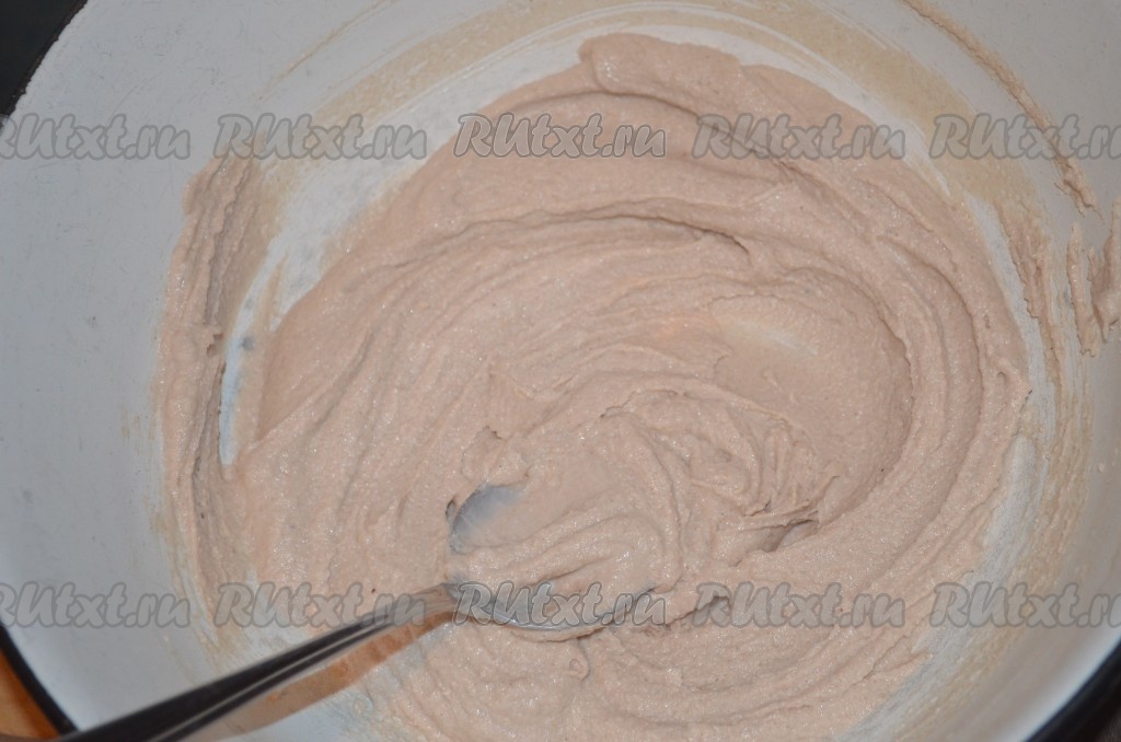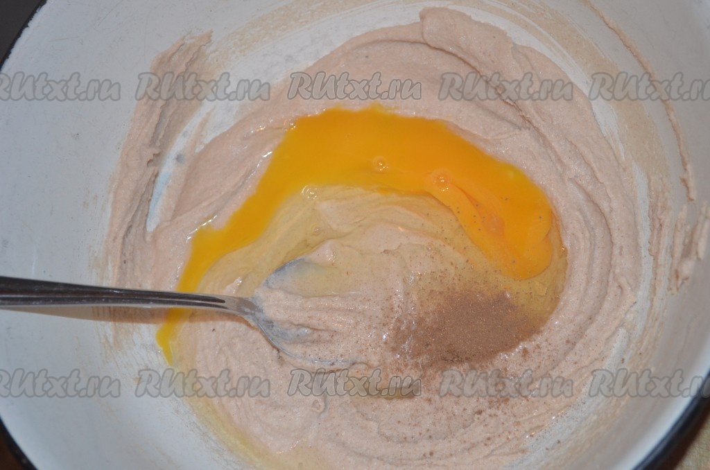 Затем добавить в тесто сырое яйцо, соль, сахар, корицу, хорошо взбить венчиком или миксером. Тесто должно быть достаточно густым.