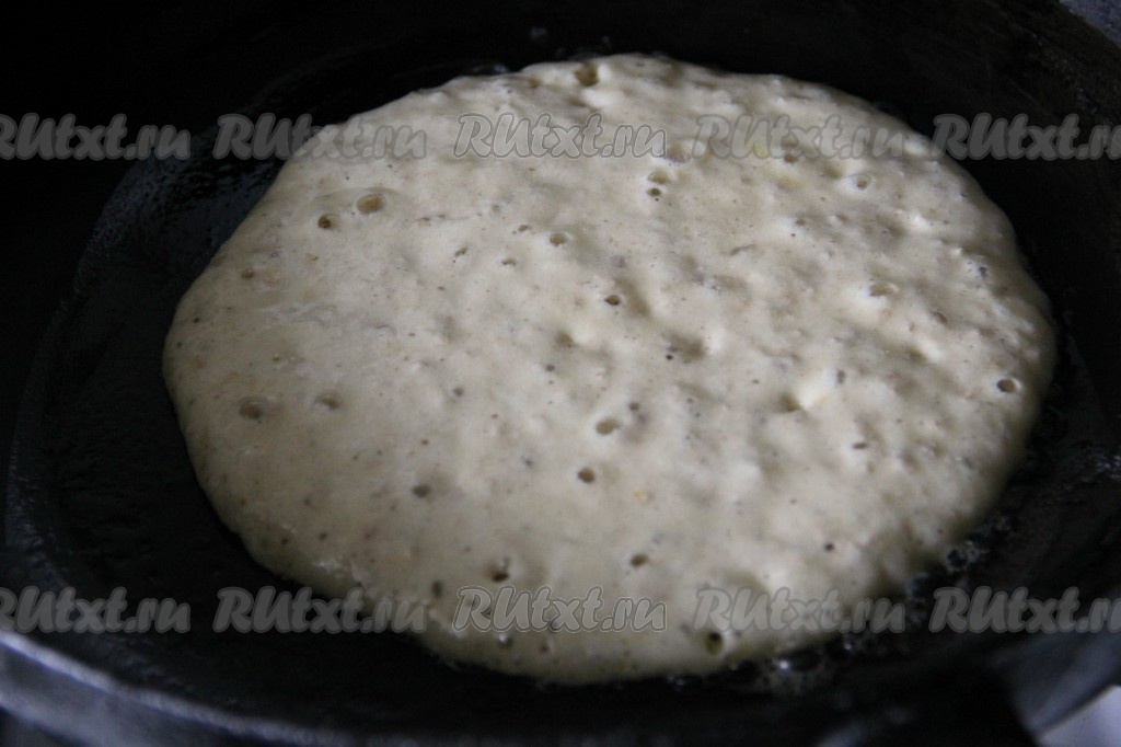 Все хорошенько перемешать. Жарить манно-овсяные блины на раскаленной сковороде, предварительно смазав ее кусочком сливочного масла.