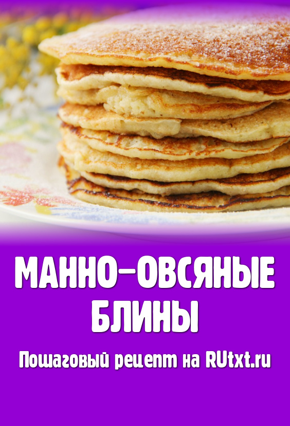 Хочу предложить вам очень удачный рецепт приготовления манно-овсяных блинов. Они получаются пористыми, воздушными и безумно ароматными. Это прекрасный рецепт будет, как нельзя кстати, в период Масленицы, разнообразит ваш стол новым вкусом. В состав теста не входит мука, она удачно заменяется манкой, что делает блины еще более нежными и пышными.