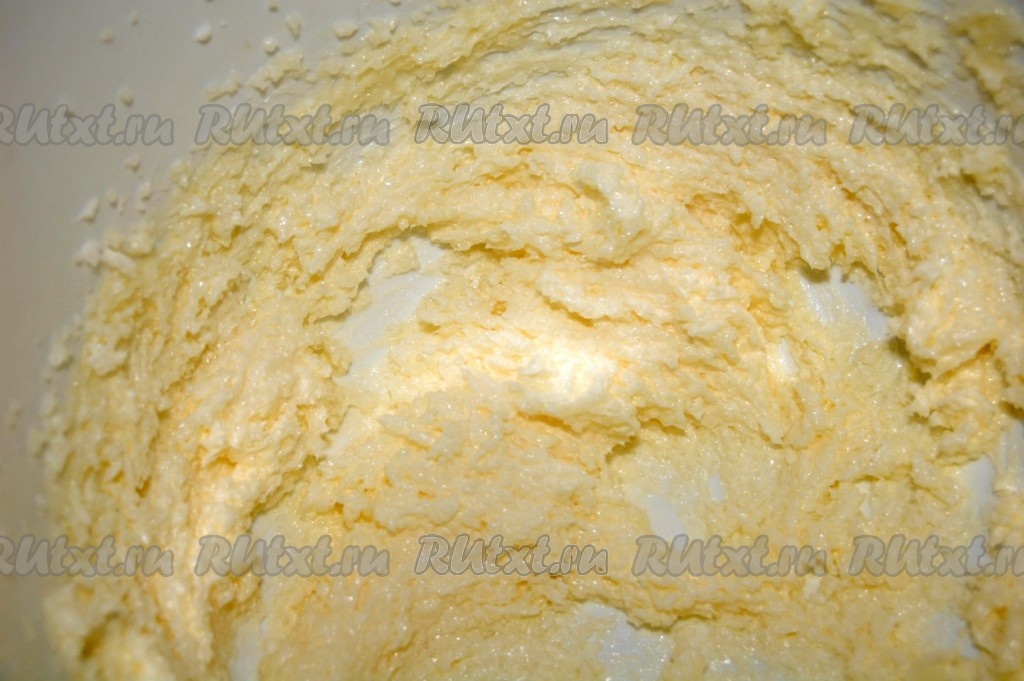 Во взбитые желтки добавить белки (белки не нужно предварительно взбивать). Взбивать всю массу до гладкого состояния.