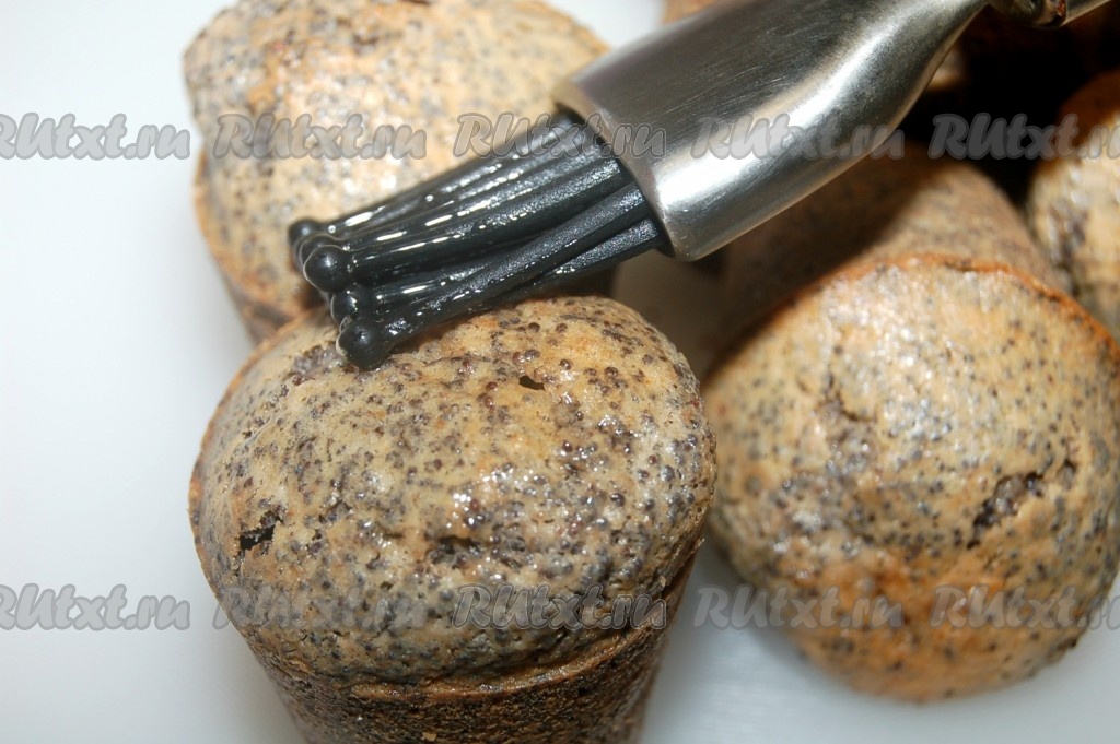 Смазать верхушки кексов масляной глазурью. Будет вкуснее, если вынести кексы на 1 час в прохладное место. А вот и приготовленные без муки кексики, можно садиться за стол.