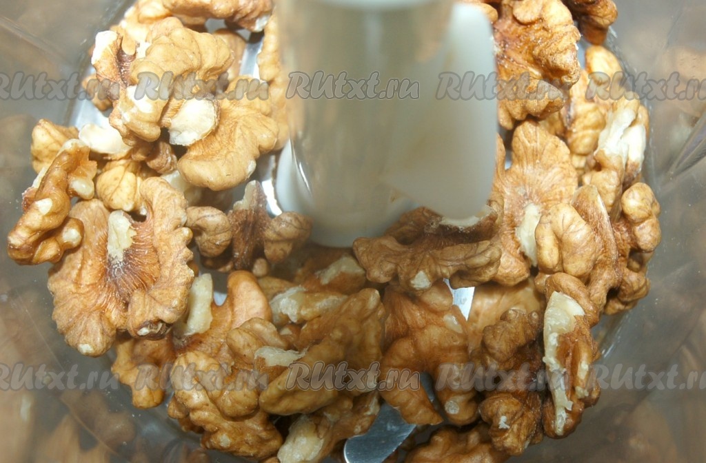 Поместить в блендер очищенные грецкие орехи.