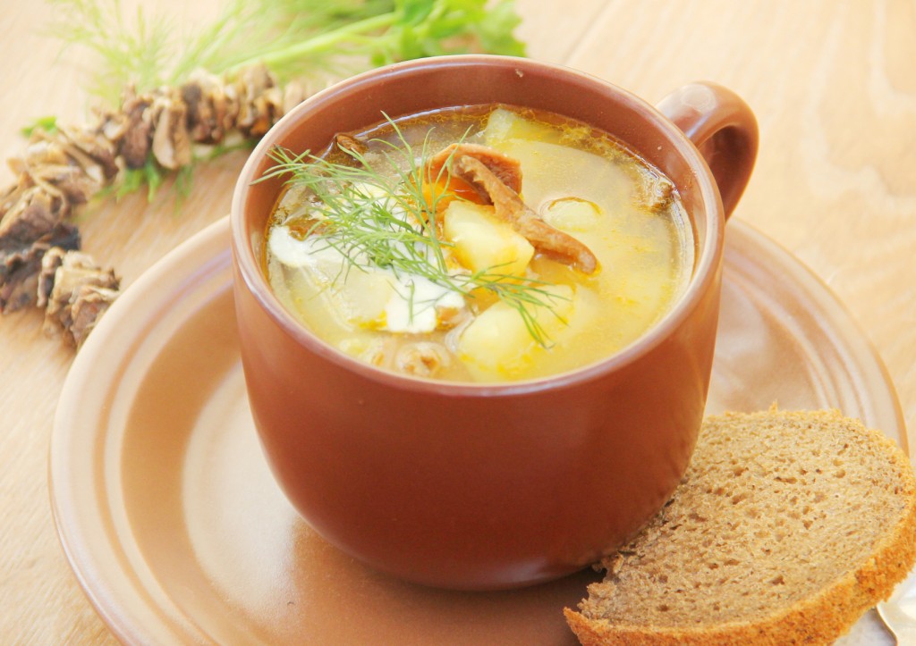 В рецепте приготовления этого грибного супа не используются специи, чтобы не перебивать аромат и вкус грибов. Вы же можете отойти от рецепта и добавить что-то от себя. Манка в этом грибном супе совершенно не чувствуется, но она придает блюду нужную консистенцию.