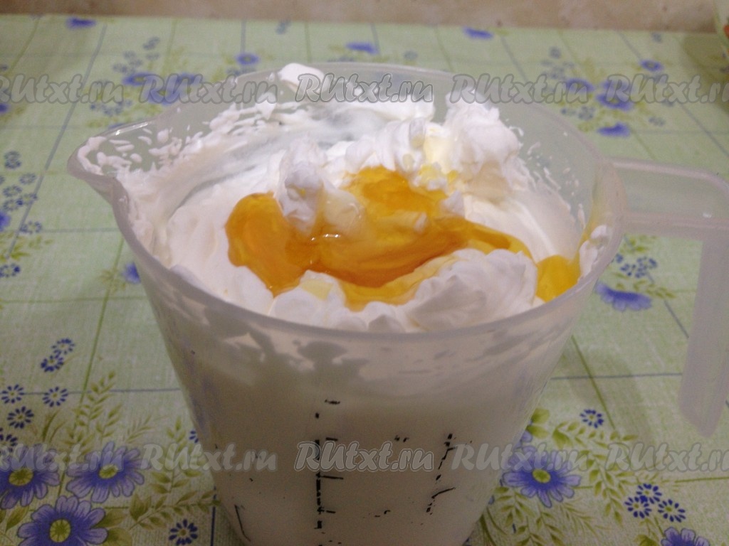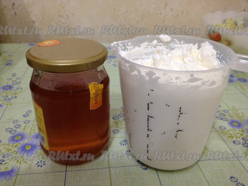 Готовим крем для отделки яблочного торта: просто смешиваем взбитые сливки с медом.