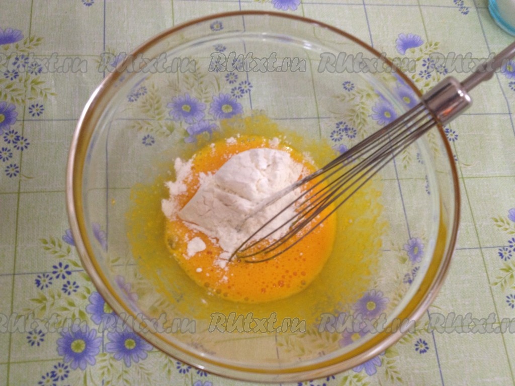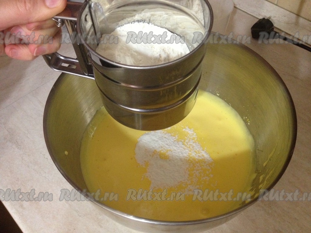 Постепенно добавляем муку, перемешивая сверху вниз, чтобы избежать комочков.
