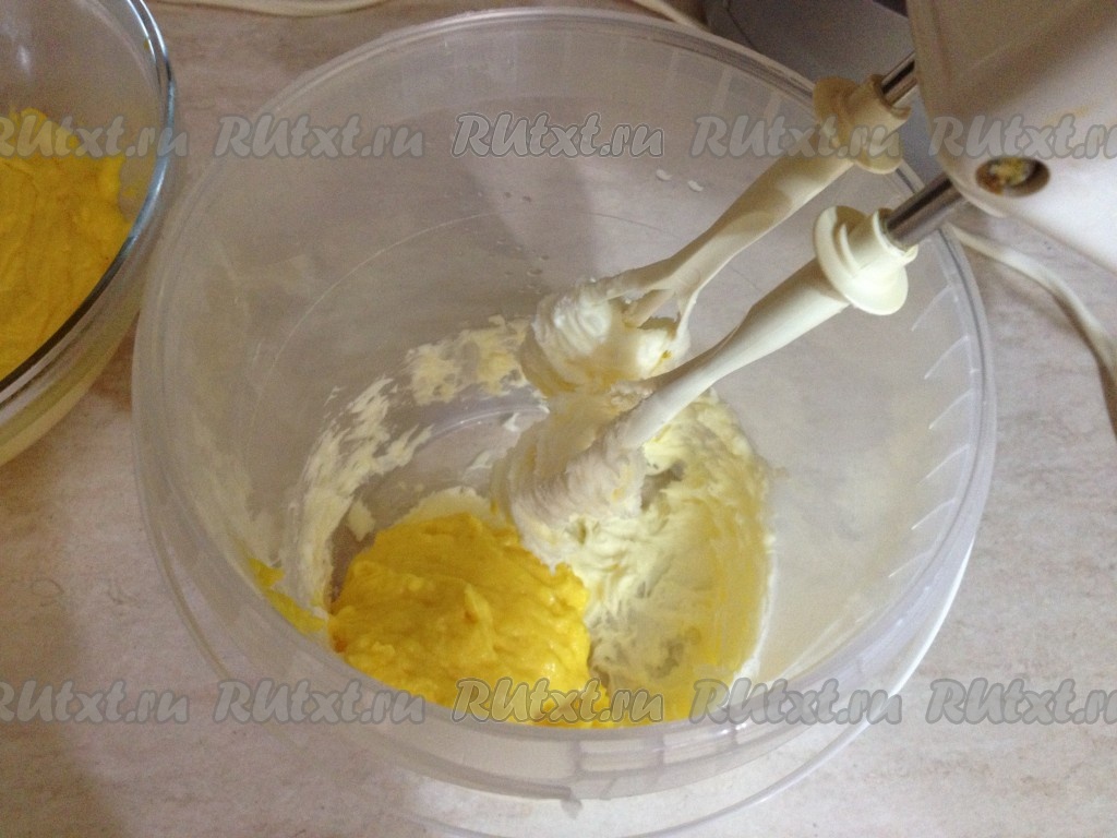 Взбиваем масло в кремообразную массу и постепенно добавляем туда наш заварной крем, не прекращая взбивать. Под конец добавляем ром.