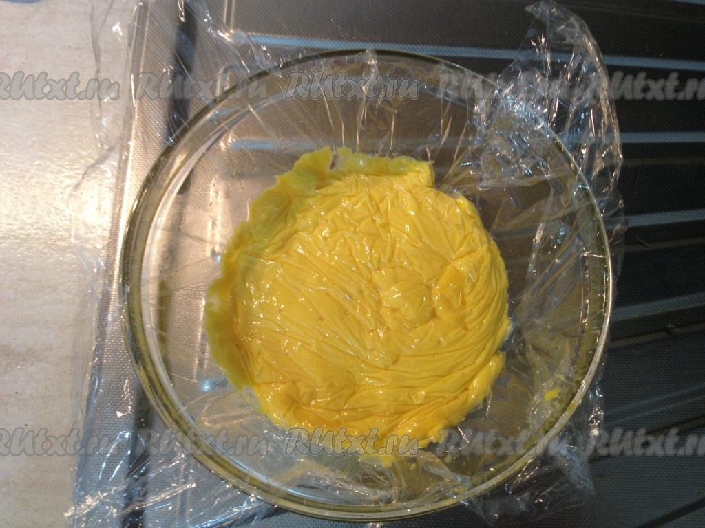 Готовый крем накрываем пищевой пленкой и даем остыть.