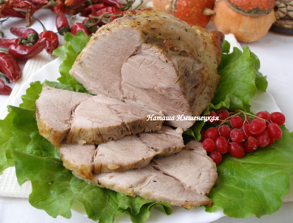 Готовую буженина достать из духовки, вынуть из рукава для запекания. Свинина получается вкусной, сочной, ароматной. Она станет украшением стола и в будни, и в праздники!
