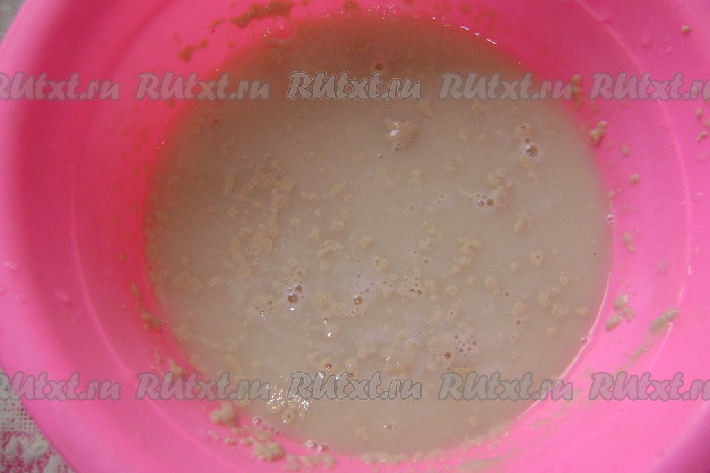Для начала приготовила опару: развела в миске с водой дрожжи и оставила на 5 минут.