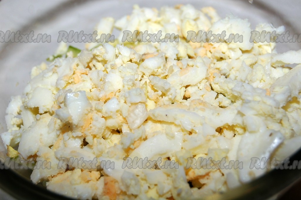 Яйцо вкрутую измельчить с помощью вилки и добавить в миску.