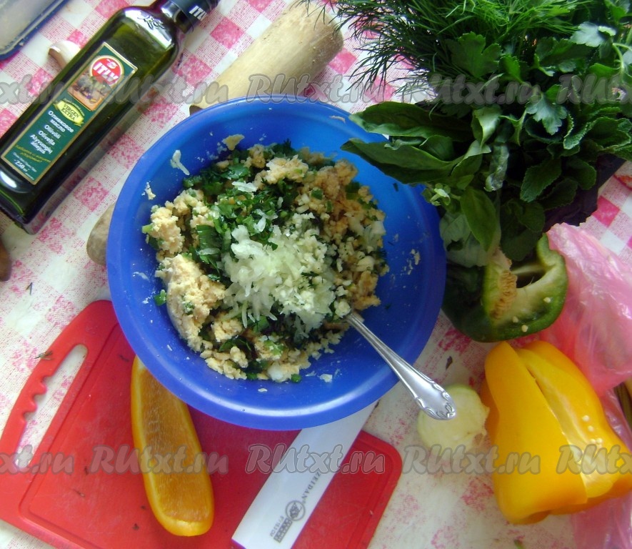 Нут замочила на ночь, утром промыла и отварила до готовности. Готовый нут очистила от кожицы и размяла в пюре. К размятому нуту добавила тахину, нарезанную зелень, натерла на терке туда лук. Чеснок и перец мелко нарезала, добавила в "фарш".