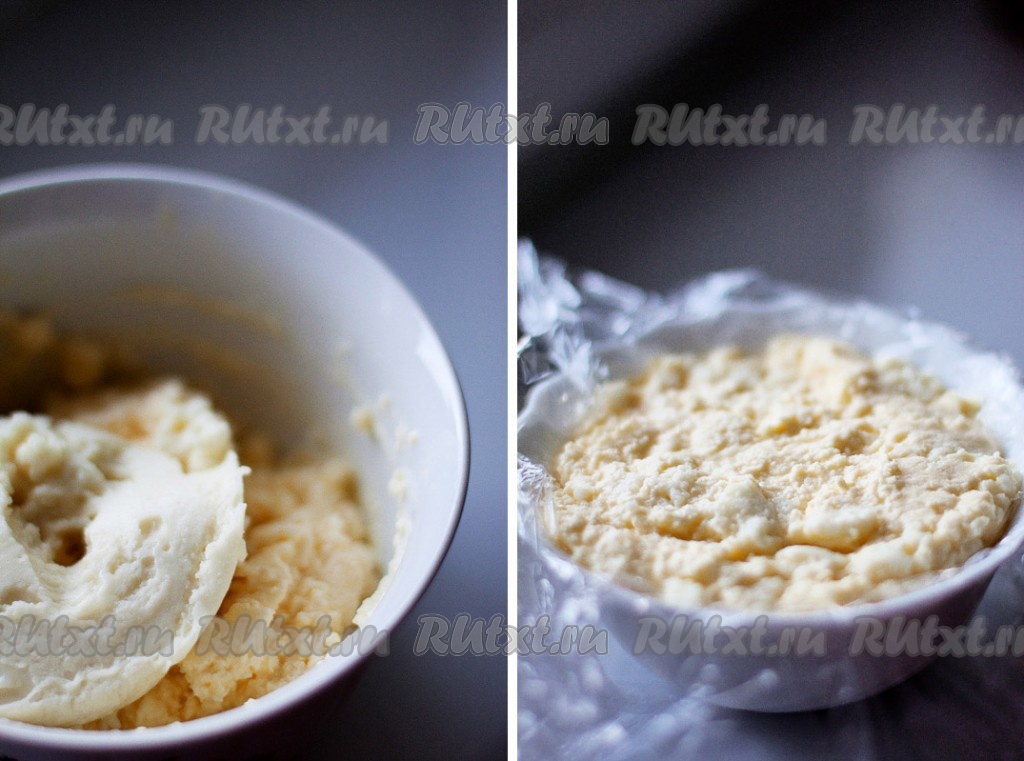 Добавьте к сыру смесь мороженого с желатином, перемешайте. Полученную массу уложите в пасочницы (у меня пиала) и поместите в холодильник до полного застывания на 2 часа, а лучше на ночь.