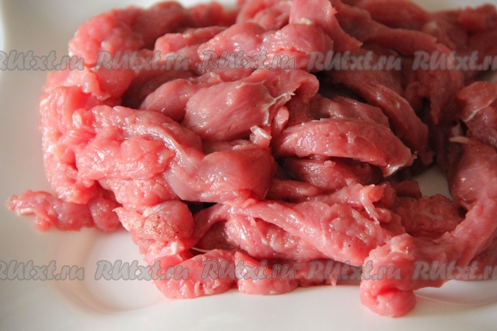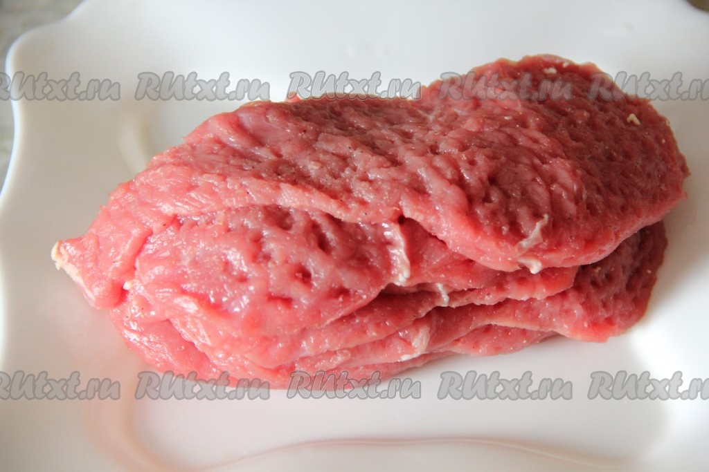 Говяжью вырезку нарезать на порционные кусочки, поперчить и отбить молотком для мяса.
