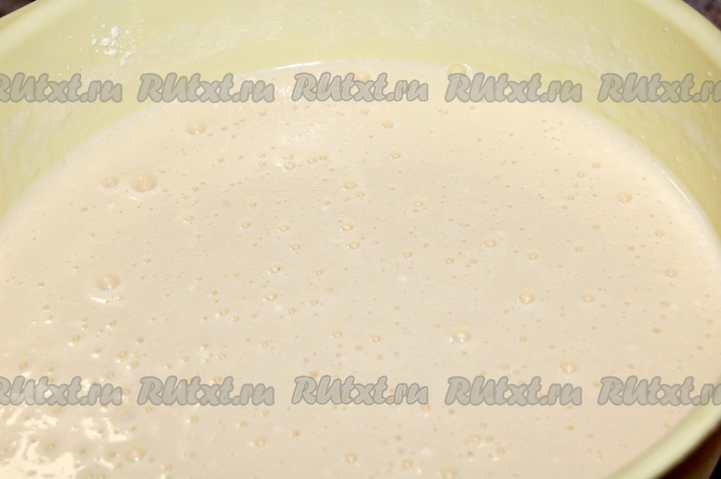 Тесто для пышного, большого блина готово.