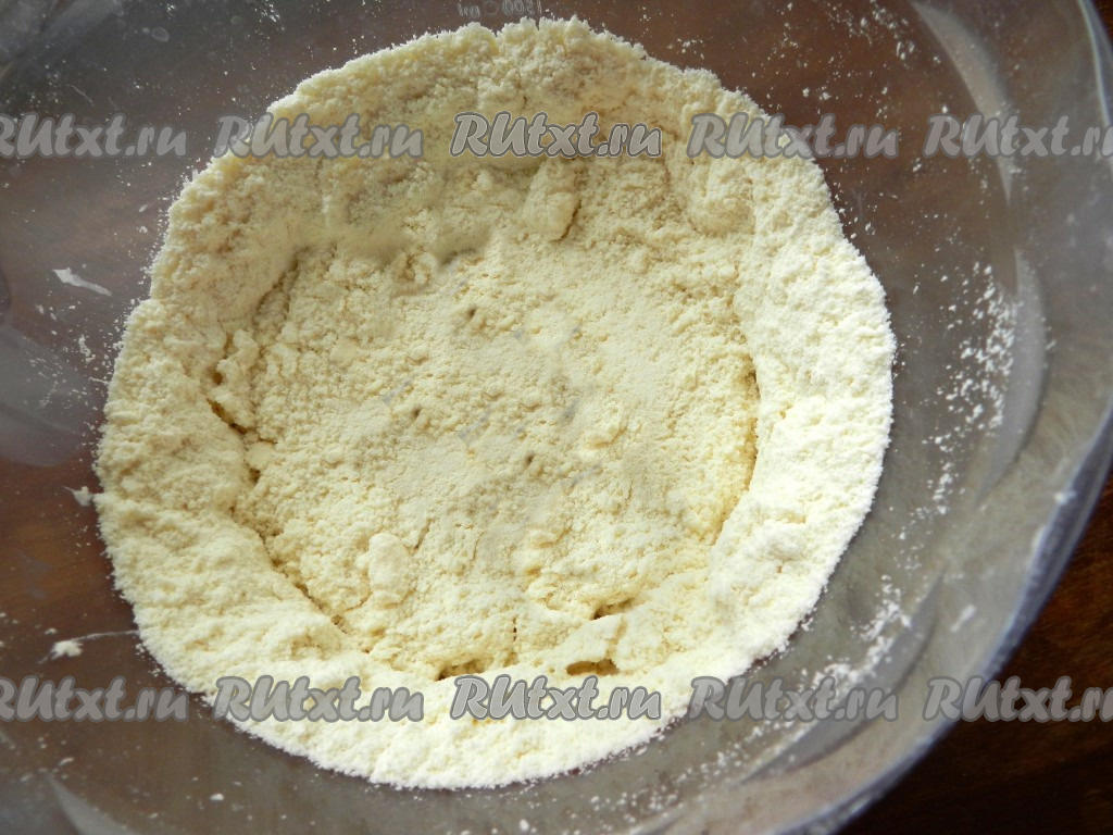 Муку, разрыхлитель, соль и холодное масло растереть в крошку.