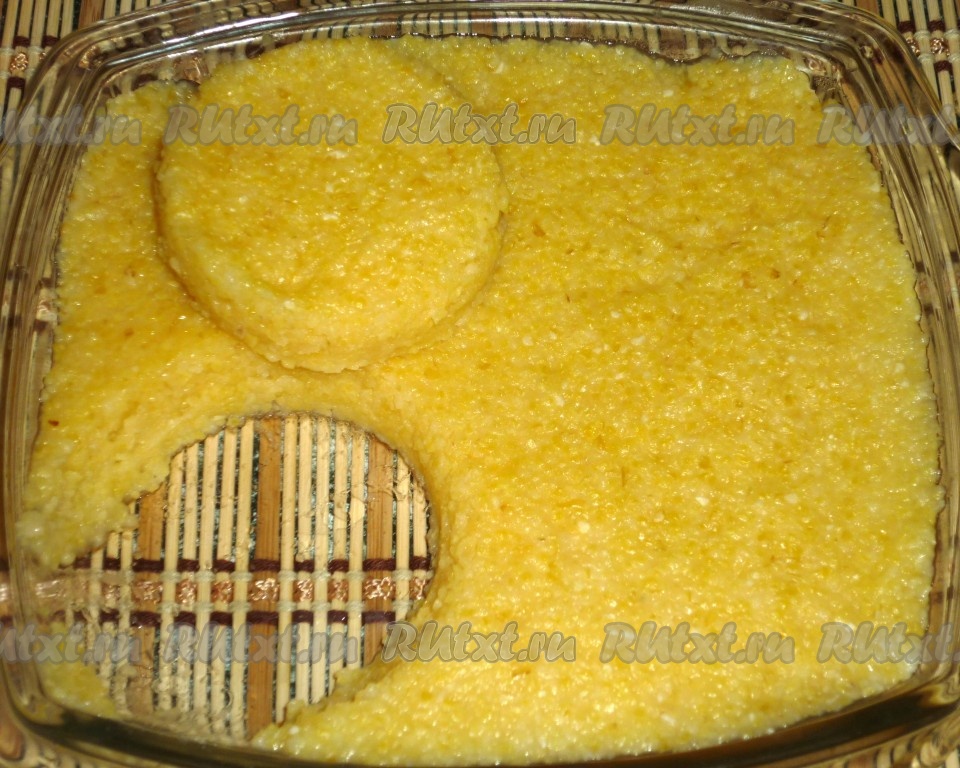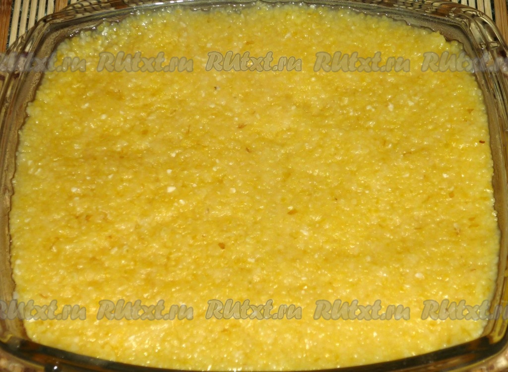 Выложить готовую кашу в форму, смоченную холодной водой. Разровнять, чтобы была ровная поверхность.