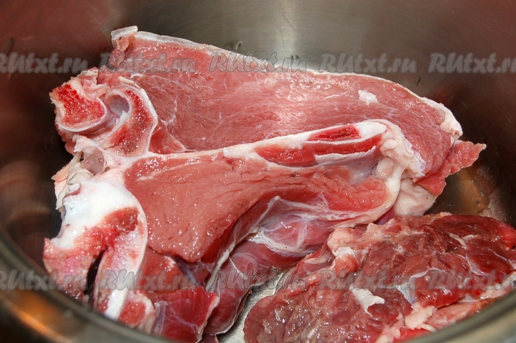 Мясо помыть, положить в кастрюлю, залить водой и варить 1,5 часа. Не забыть снять пену.