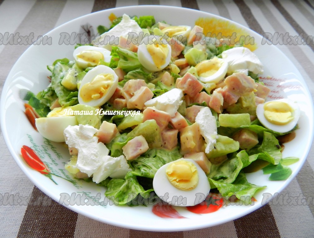 В заправленный салат добавить разрезанные пополам перепелиные яйца и сыр.