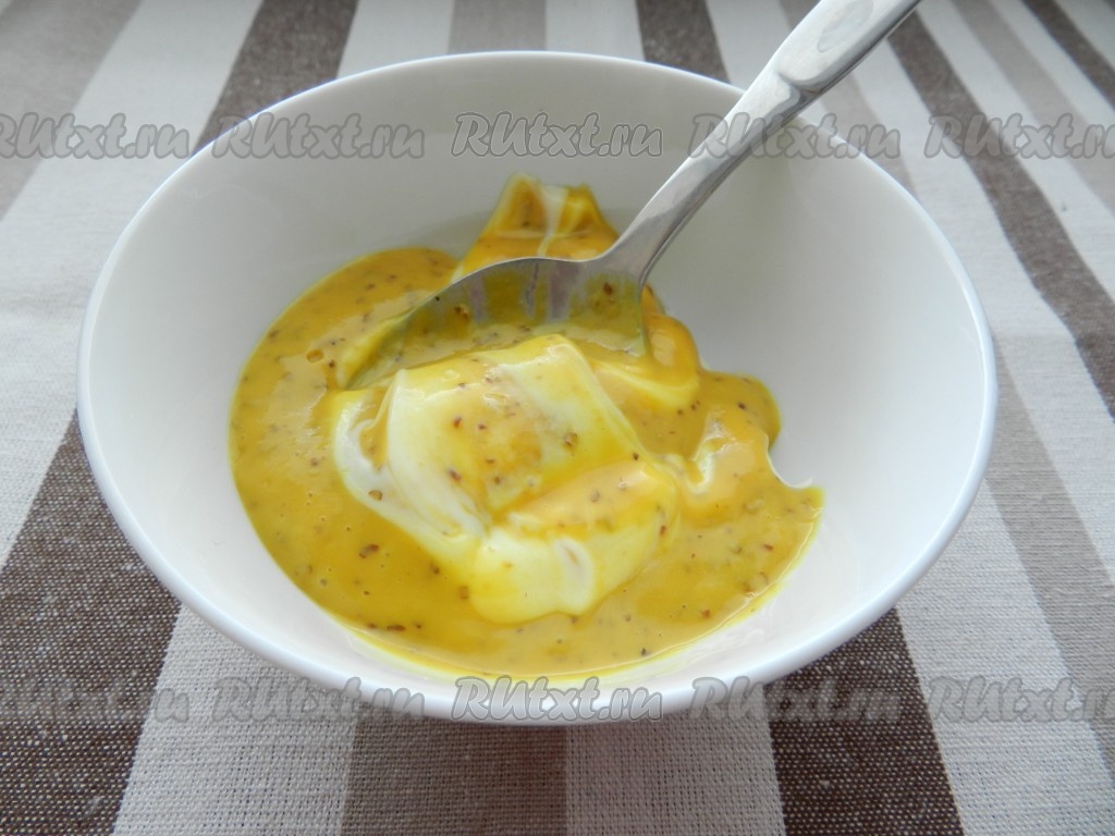 Смешать горчично-апельсиновый соус с майонезом и добавить оригинальную заправку в салат.