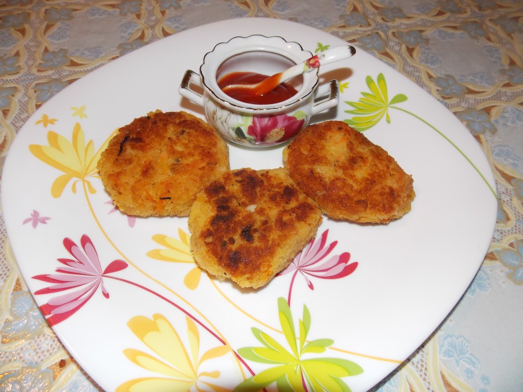Обжарить котлеты из гороха и риса с двух сторон до золотистого цвета.