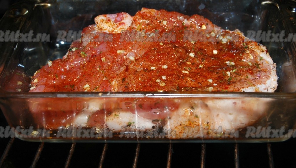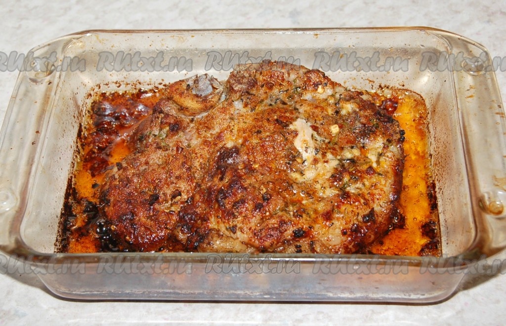 Отправить форму со свиной отбивной в заранее нагретую до 200 градусов духовку. Запекать в духовке 30 минут.