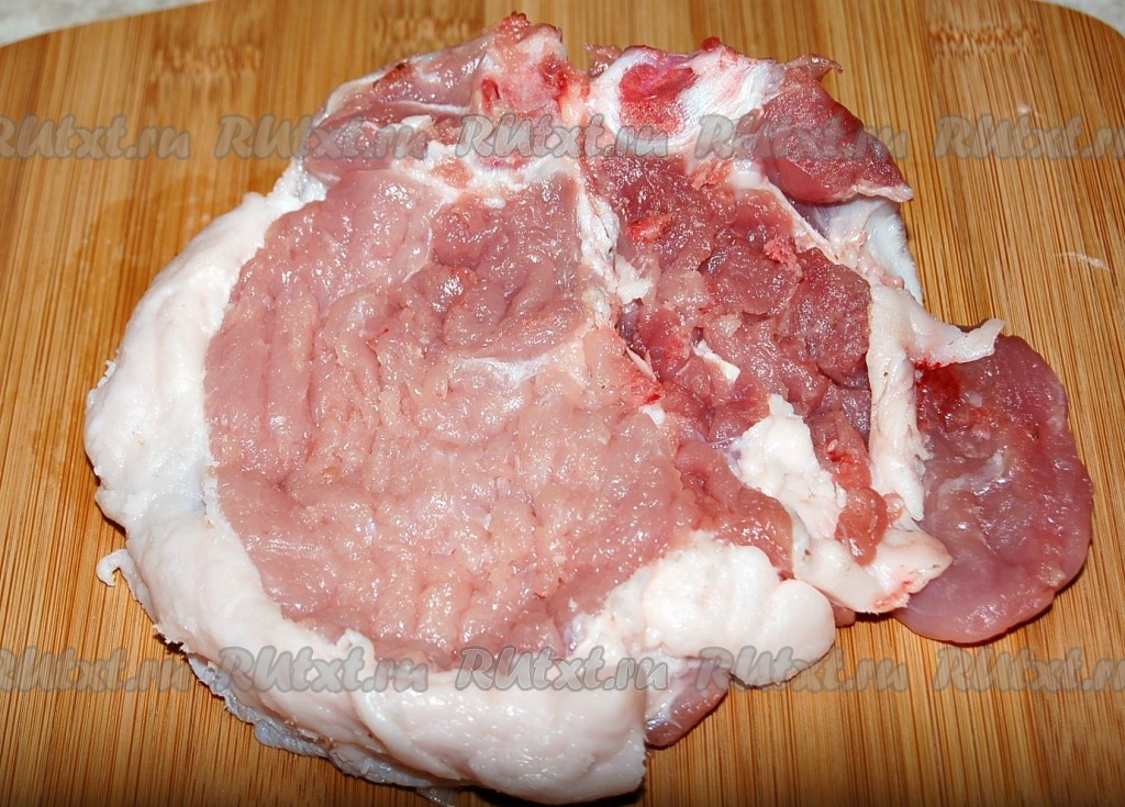 Свиную отбивную помыть, обсушить и отбить молоточком.