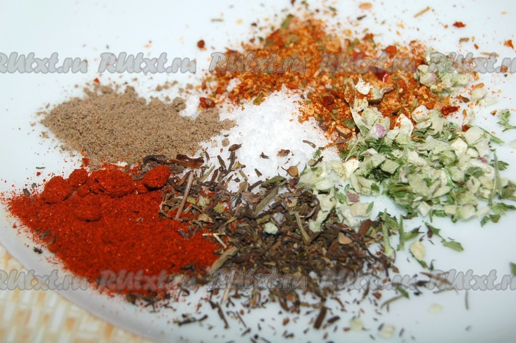 Приготовить специи и соль. Все высыпать на тарелочку.